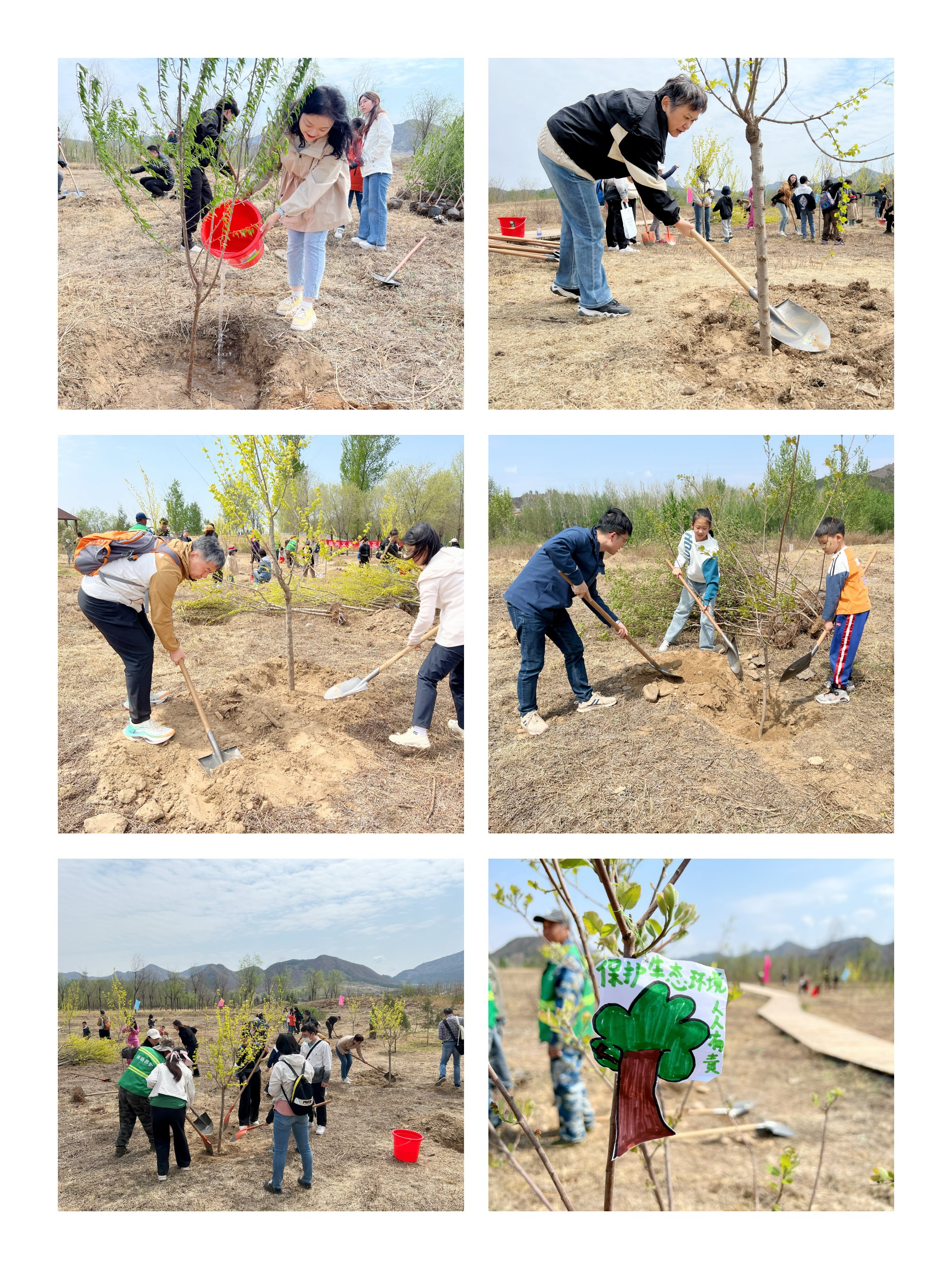 京郊大地,春意盎然。大家抵达密云太师屯“互联网+全民义务植树”基地后,立即热情高涨地投入到植树劳动中,挥锹挖坑、扶正树苗、培实浮土、提桶浇水,分工协作、干劲十足,共计种植金叶榆、黄栌、山桃等树苗130余株。经过一番辛勤的劳动,植树基地很快又增添了一片新绿,点缀了朵朵桃红,呈现出一派春和景明、生机勃勃的喜人景象。