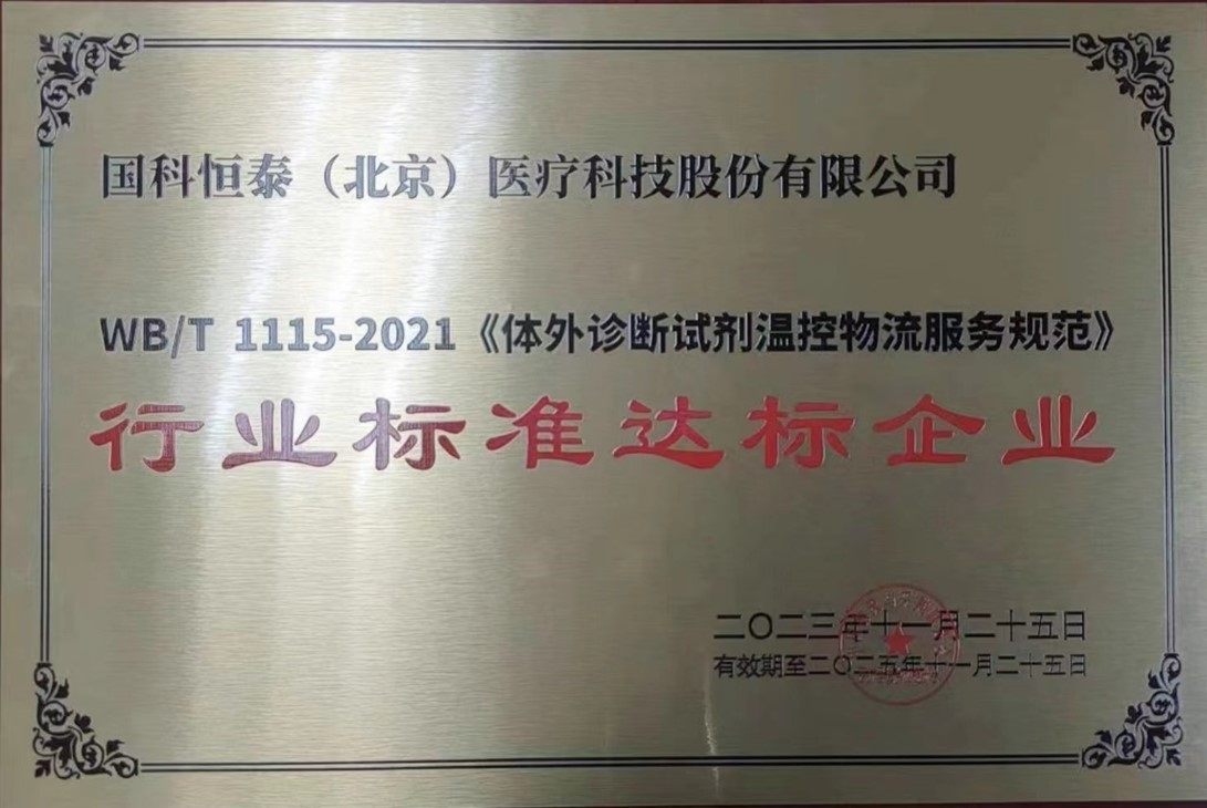 针对体外诊断试剂温控物流服务的市场需求,国科恒泰不断提升相关市场的服务质量,在本次评选中成功从《体外诊断试剂温控物流服务规范》的试点企业,升级为达标企业。该升级标志着国科恒泰的医疗器械供应链服务质量获得业内权威机构的认可,已具备行业领先的规范化、标准化的体外诊断试剂温控物流服务水平。