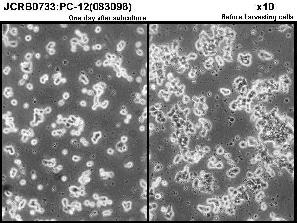 ● JCRB细胞库保存的PC-12细胞被标注为具有贴附性变异特征,但其实际贴附能力较弱。PC12细胞系最初建系时是悬浮细胞,JCRB细胞库保存的PC-12细胞也常出现不贴附、聚集成团增殖的情况。