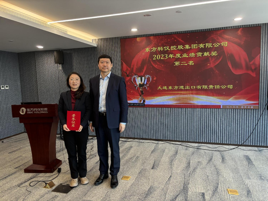 会议对2023年度控股企业业绩贡献奖、2023年度集团公司勤勉进取奖、管理创新奖和团队贡献奖进行了表彰。东方科学仪器上海进出口有限公司荣获业绩贡献奖第一名,大连东方进出口有限责任公司荣获业绩贡献奖第二名。