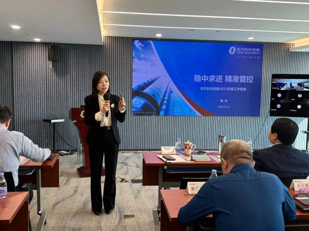 她强调,2024年是中国科学院全面开启加快抢占科技制高点新征程的一年,东方科仪控股应继续秉承中国科学院和国科控股对院属企业“姓科、属科”要求的宗旨,认真践行“聚焦主责主业、做好科技服务、助力成果转化、推动创新发展”的战略目标与方向,紧密围绕 2024年度“稳中求进、聚焦科技、加强监管、提质增效”的十六字工作主线,在全面加强党的领导、聚焦科技成果转化、做好双非企业清理、持续推进战略落地、完善治理体系建设、优化内部管控体系、深化人才队伍建设、推进信息体系建设、提高财务工作水平、促进品牌文化建设等十个方面抓好重点工作的落实,为助力加快抢占科技制高点做出应有的贡献。