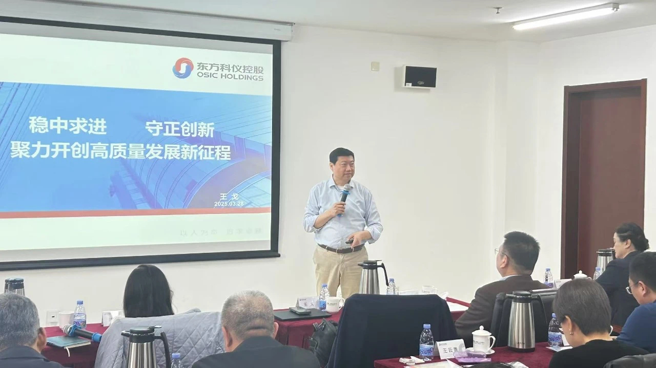 党委书记、董事长王戈对东方科仪控股成立四十五年来所取得的成绩进行了全面回顾,对2025—2027年战略规划框架进行了解读,并明确了2025年重点工作任务:一是要持续深化党的建设,全面加强党的领导;二是要深入开展党纪学习教育,营造风清气正的企业环境;三是要明确新三年战略规划,全力抓好新三年战略开局;四是要持续加强与科研院所的创新协同,加快推动科技成果转移转化工作落地;五是要强化人才培养和梯队建设,打造高素质专业化人才队伍;六是要加强治理体系建设和财务管理质量,巩固提升运营管控水平和风险防范能力。