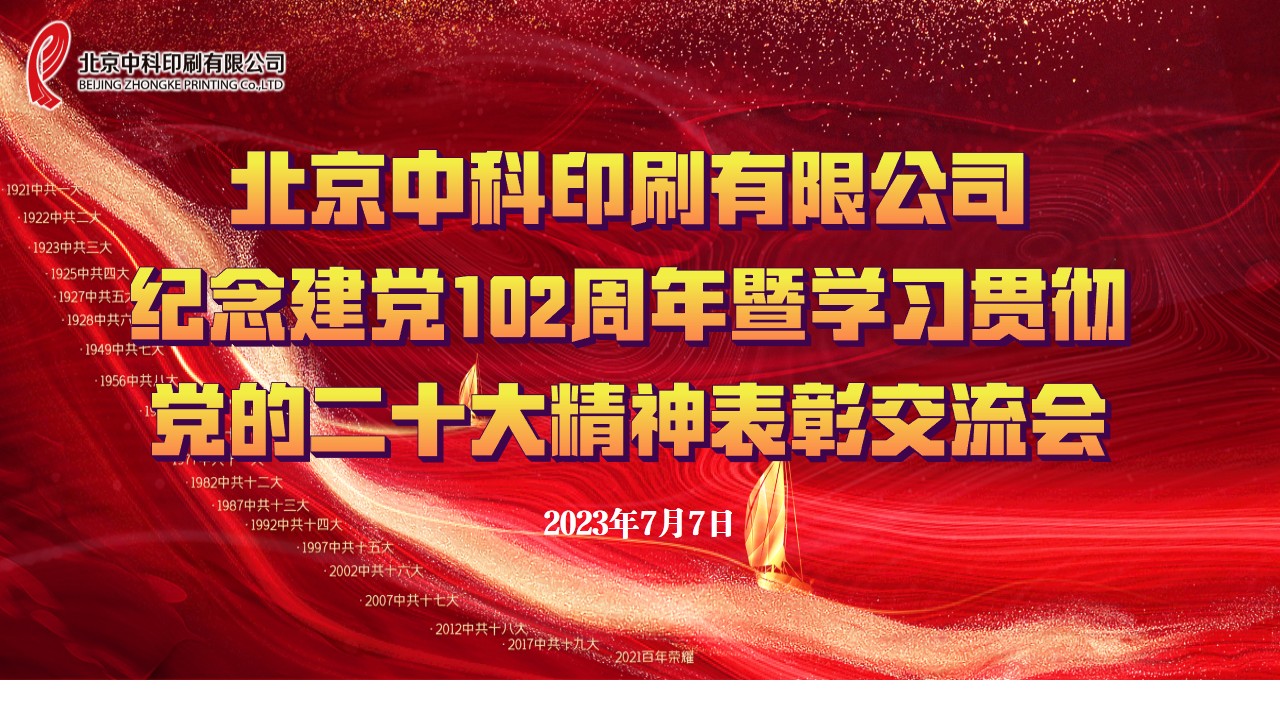 2023年7月7日上午,北京中科印刷有限公司召开纪念建党102周年暨学习贯彻党的二十大精神表彰交流会,深入学习贯彻习近平新时代中国特色社会主义思想,总结2023...