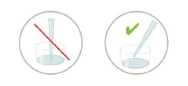 When pipetting, the tip is offset from the vertical by a slight angle, but do not touch the bottom of the sample well.