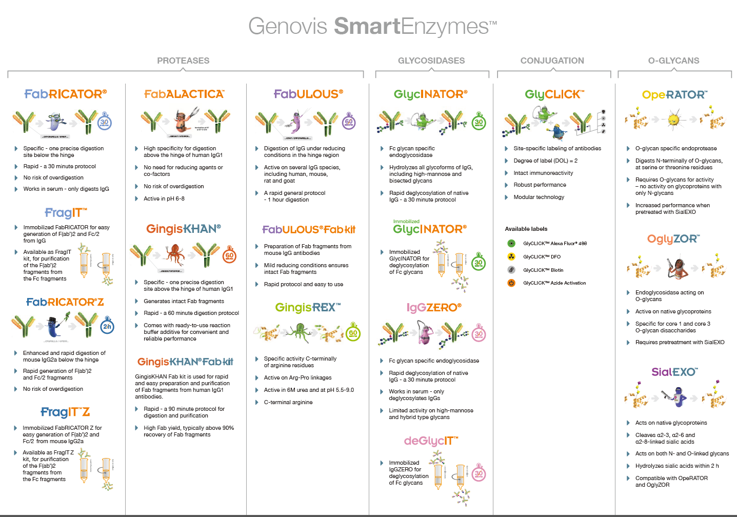 Genovis's intelligent enzymes can be divided into the following five categories.