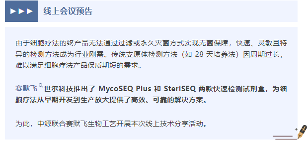 赛默飞世尔科技推出了MycoSEQ Plus 和 SteriSEQ 两款快速检测试剂盒,为细胞疗法从...2025-06-06
